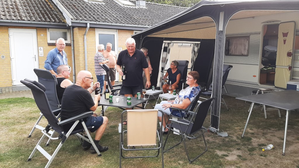 Der blev tændt op i den store fællesgrill og så blev det ellers til en hyggelig aften i det gode vejr.