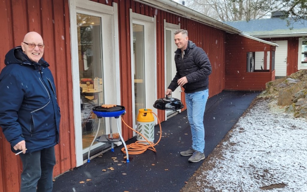 Om aftenen havde vi købt mad ind, som vi sammen grillede og spiste i opholdslokalet ved køkkenet.