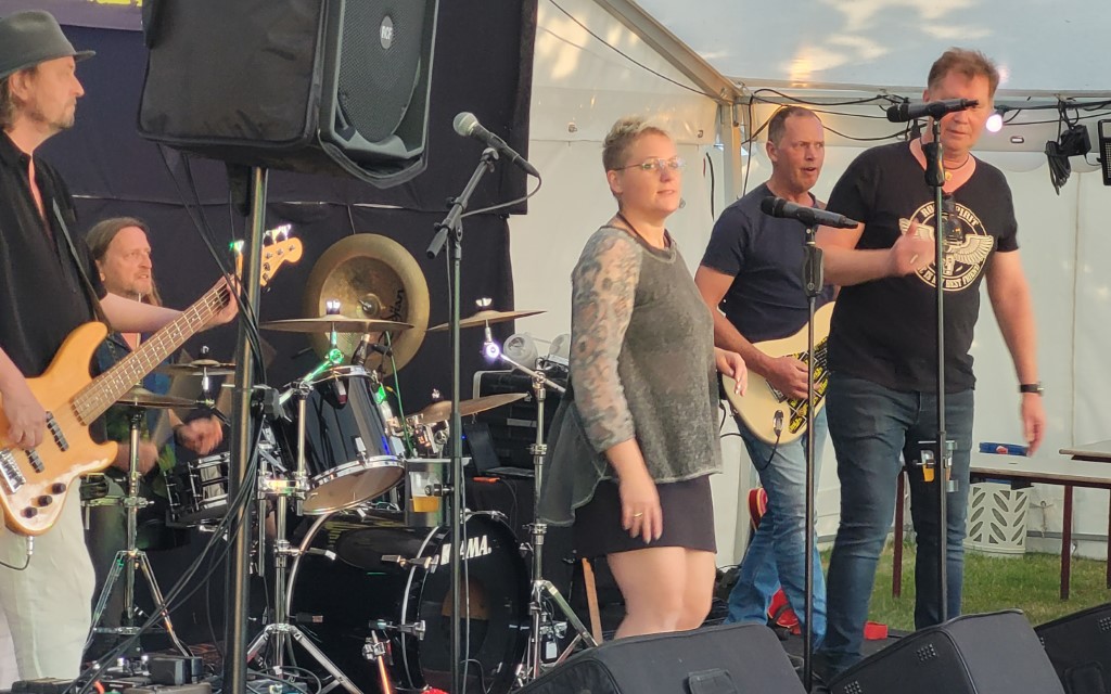 Lørdag var der midsommerfest på campingpladsen med levende musik og mad.